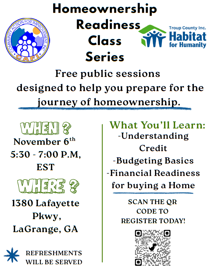Started in 1966, Community Action for Improvement, Inc. (CAFI) has been serving Georgia residents in Carroll, Coweta, Heard, Meriwether, and Troup counties for over 50 years. With a mission to assist low-income families and individuals in achieving self-sufficiency and self-empowerment through the delivery of high-quality social services, CAFI has provided home weatherization, early childhood education, utility and/or energy bill assistance, and housing assistance to thousands of Georgia residents seeking a hand-up, not a hand-out.